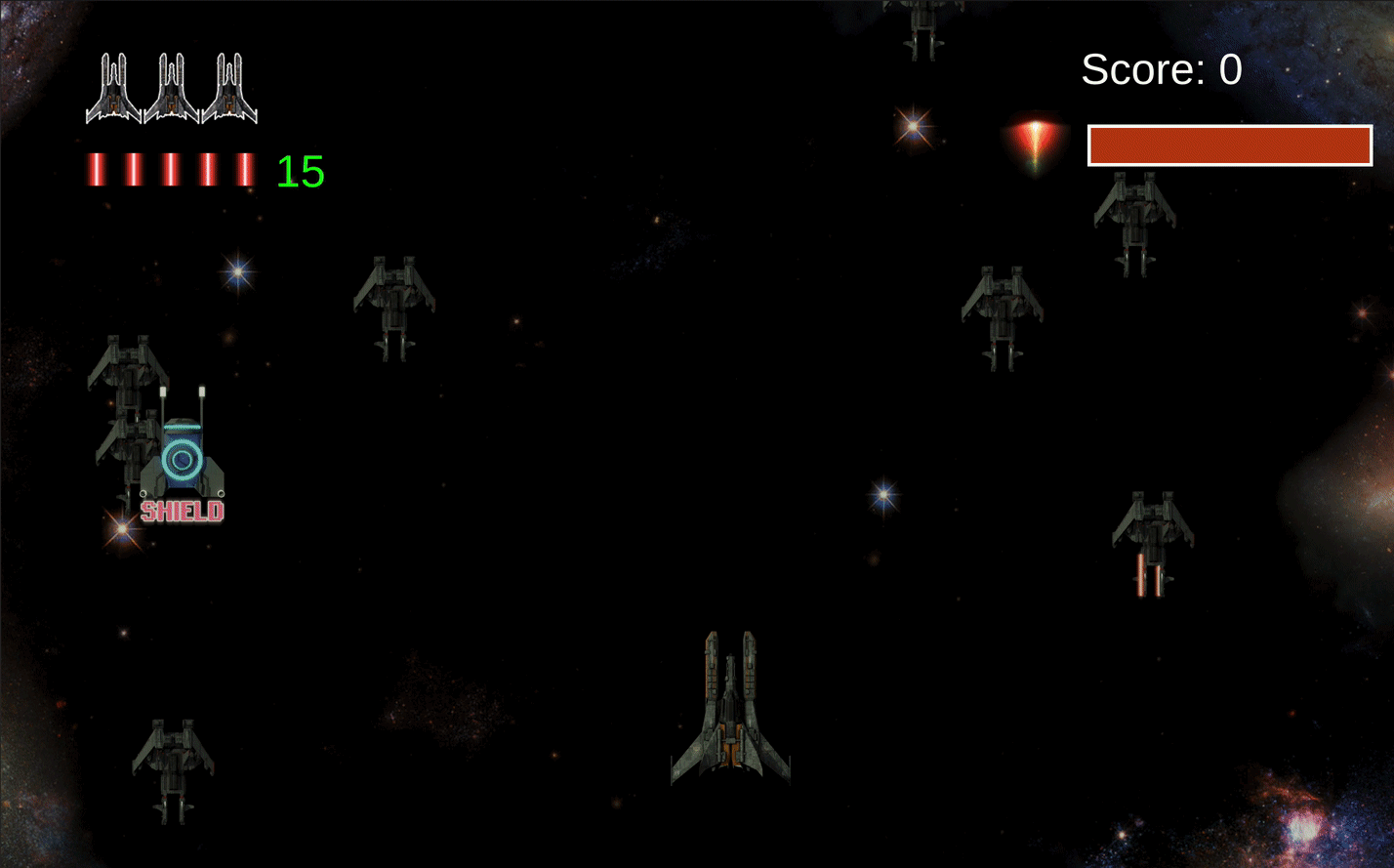 Galaxy Shooter contains different powerups that you can collect through the game that will help you stay alive.